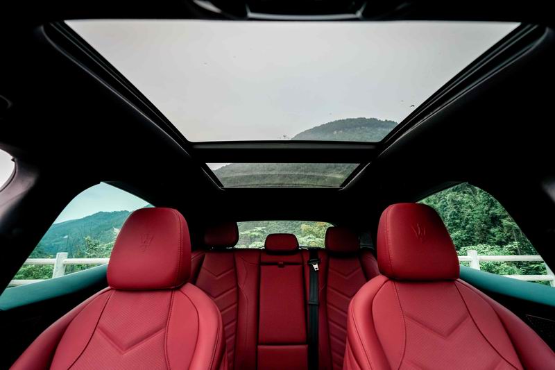 把看似矛盾体验完美相融的GranCabrio敞篷跑车,则为旅行更添几分源自地中海的浪漫风情。其车顶篷采用织物材料制成,更可在达50千米/小时的车速下,于14秒内打开并收纳至后备厢内。驭风之感,触手可及。可容纳四人的敞阔座舱空间,满足了不同的场景需求,不论是结伴而游,或是独自出行,均可畅享壮游新境。秋色初显之际,顶篷开启,天光倾泻,驾乘者仿佛与山岚齐肩、与秋气相拥,带来无与伦比的沉浸式体验。“晴空一鹤排云上,便引诗情到碧霄”,此刻的诗意,不仅是风景,更是心境的自如与开阔。身处东方秘境,却也同时享受到了纯正的意式出行格调。