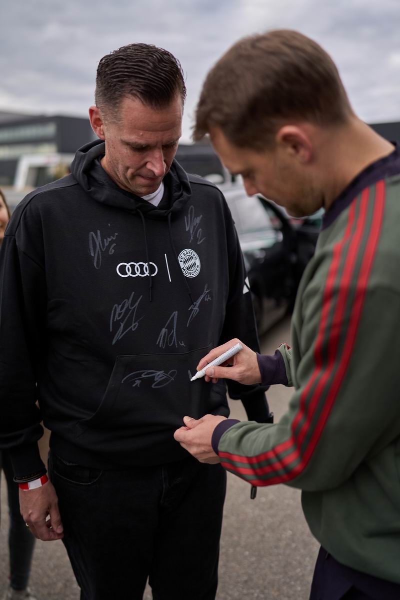 对于来自奥迪的100名员工而言,这一天同样意义非凡。他们在公司内部举办的一项活动中脱颖而出,获得了与拜仁球星近距离交流的机会。除了签名与合影,活动中最令人难忘的环节莫过于新车钥匙的交付仪式,16名奥迪员工亲手将钥匙交到了球员手中,这一刻无疑将成为他们长久珍藏的特别记忆。