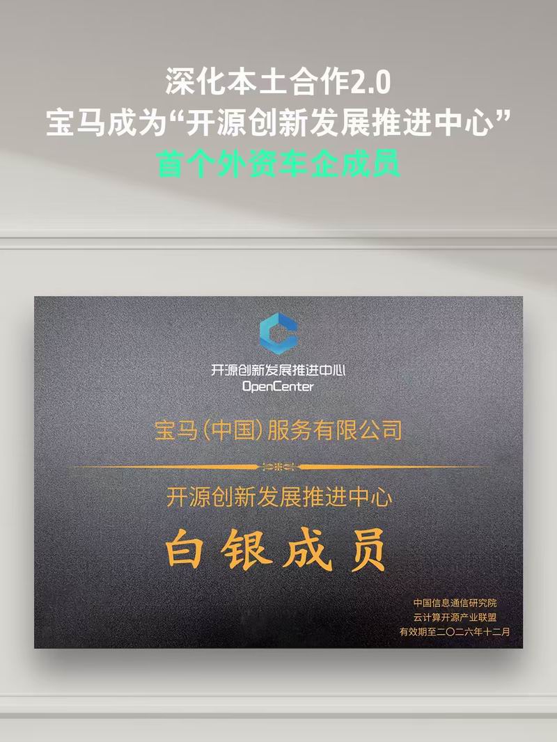 宝马在华的软件研发、智能驾驶和数字生态将全面升级。加入“开源创新发展推进中心”,标志着宝马在中国持续深化合作2.0战略——