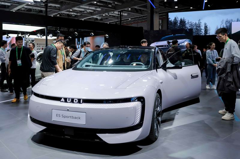 展台的左侧,奥迪旗下四环及AUDI双品牌让传奇与未来同频闪耀。全新AUDI E5 Sportback以奥迪轿跑经典曲线与本土创新科技,勾勒出智能电动豪华的全新姿态,奥迪A6L e-tron 则凭借卓越的驾乘舒适性与长续航,诠释纯电出行的从容与力量。与它们同台的,是一位来自 半个世纪前的“老朋友”——奥迪100 Coupé S。时至今日,它所承载的先锋精神仍启迪着品牌的进取之路。