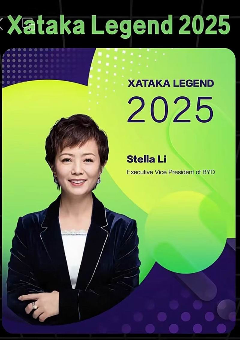 奖项评语进一步指出:“为表彰她的远见、坚持与影响力,2025年Xataka传奇奖授予比亚迪执行副总裁李柯。”