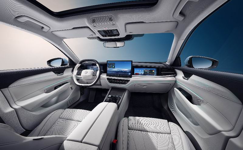 车内则以越级体验打造悦享座舱,内饰采用横向贯穿的一体化设计,搭配分层包覆工艺,不仅拉宽视觉空间,更让B级车拥有C级车的开阔感,营造出简约温馨的全新电感座舱氛围,既富有质感又不失实用性。