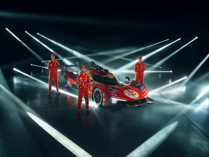 象征冠军荣耀的月桂叶标识,清晰镌刻于赛车前轮毂罩的跃马盾徽下方。而两台法拉利原型赛车,将连续第四年由固定的车手组合驾驶出赛。Antonio Fuoco、Miguel Molina和Nicklas Nielsen将继续搭档,驾驶50号法拉利499P赛车;而51号法拉利499P赛车则依然由Alessandro Pier Guidi、James Calado和Antonio Giovinazzi共同驾驶。作为2025赛季的车组世界冠军,51号车组的赛车车门上方将额外装饰由国际汽联授予的冠军月桂叶标识,尽显殊荣。