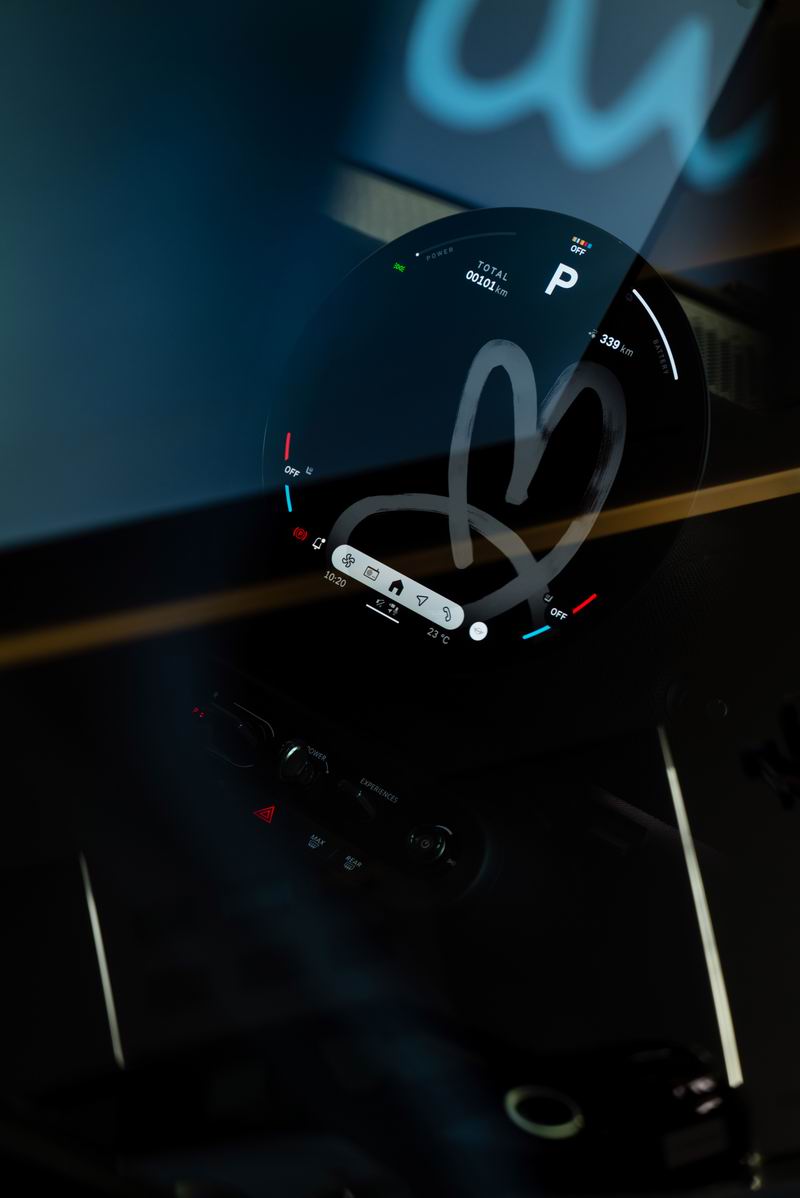 在全新MINI Paul Smith设计师款中,这项技术展现了极致的艺术表现力。Paul Smith标志性的暗调条纹就是通过三种不同粗细的针法,将结构感与立体感精准织入。这种内敛低调的纹理,配合纱线本身的触感,完美呈现了电动MINI COOPER PAUL SMITH设计师款克制的设计风格,更如同一块极具质感的艺术底色,衬托出座舱内的亮眼细节:龙葵蓝运动座椅、由10种颜色彩条组成的方向盘编织绑带,以及圆形OLED屏内内置的3款专属壁纸。