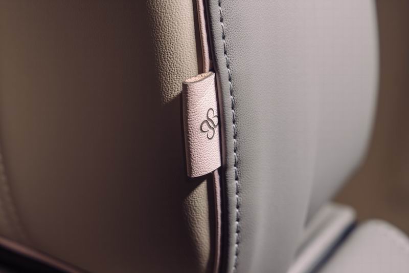 标准版套件灵感源自2024年与Boodles共同打造的欧陆GT敞篷版的现代美学配色,引力灰(Gravity Grey)与亚麻白(Linen)皮革搭配秋露白(Autumn)原石饰面与亚麻白钢琴漆木饰面,辅以精致的菱形细节装饰与氛围灯,营造出静谧雅致的氛围。中控台嵌有专属设计的“Be Boodles”纹样钻石。淡粉色(Powder Pink)作为强调色,以反衬色滚边、刺绣工艺贯穿整个座舱,饰面上的淡粉色喷漆饰条,更是致敬这一Boodles标志性的品牌色彩。车型采用极具视觉冲击力的煤炭灰外观漆面,配备珠宝质感的自正式轮毂盖、Boodles专属徽标,以及精致的淡粉色后视镜罩喷漆饰条。