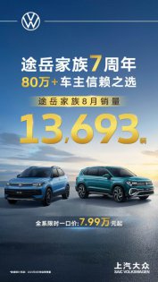 8月,上汽大众途岳家族销量持续火热,单月热销13,693辆,稳居合资紧凑型SUV市场前列。自上市以来,途岳家族已经走过七年历程,凭借德系硬核品质和出众产品力,至今已赢得超80万车主信赖,成为年轻用户和家庭用户的可靠首...