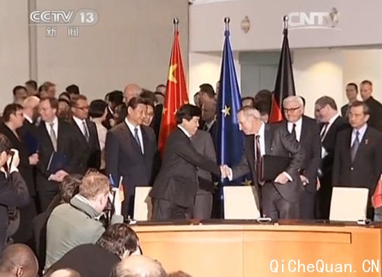 3月28日,在中国国家主席习近平与德国总理默克尔的见证下,中德两国共同发表了《建立中德全方位战略伙伴关系的联合声明》,为中德关系未来发展确定了方向。签约仪式上,华晨汽车董事长、总裁祁玉民代表中方同德国宝马签署了“宝马集团和华晨集团深化合作备忘录”,为两国在汽车领域的发展合作迈出了更坚实的一步。此次,华晨汽车与德国宝马的签约金额约为150亿人民币,约合18亿欧元。