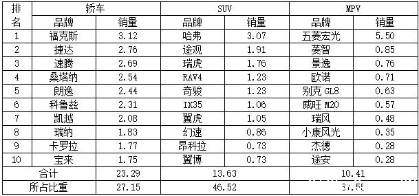 7月份SUV、轿车、MPV销量前十 【哈弗】3.07万辆。继续领跑中国SUV市场。众所周知,哈弗是一个品牌,但主要的销量贡献为哈弗H6,加之7月份新的H2加入,哈弗自然而然地继领跑。其实,如果将哈弗H6单一产品来说,同样也位居所有的SUV销量之首。这也是长城SUV强大的表现。 【途观】1.91万辆。最大的竞争对手东风本田CR-V 7月份跌出SUV销量前十,让途观自然地领跑主流20万元级SUV市场。途观与CR-V这两个“常青树”长期角逐,因7月份CR-V的“意外”跌落而大失 看点。那么CR-V究竟遭遇到了什么问题而跌出前十尼?接下来我们会有分析报道。 【瑞虎】1.76万辆。中汽协的数据没有注明这个销量是瑞虎整个品牌还是瑞虎一个产品,从销量来判断,应该是奇瑞瑞虎品牌旗下的三个系列瑞虎、 瑞虎3以及瑞虎5,这三款产品从7万到15万元,价格涵盖了自主品牌所有的SUV细分市场,顶配价格逼近主流合资SUV产品。这也说明,瑞虎3瑞虎5慢慢 地打开了市场,奇瑞转型初步收到了回报。 【RAV4】1.23万辆。CR-V退出前十,让同属日系的一汽丰田RAV4似乎占了便宜。与上代相同,RAV4慢热但却一步步在接近市场目标,过去受CR-V的阴影和压力,RAV4似乎难以翻身,而本月CR-V不见了踪影,RAV4、奇骏们的机会似乎到了。 【奇骏】1.23万辆。与RAV4不同,奇骏完全否定过去重新定位,加之推出时间较晚,前有CR-V后有RAV4,要想一飞冲天何谈容易。奇骏 在推出后虽然预定以及销售表现尚可,但远没有达到它想要的状态。7月份奇骏达到1.23万辆,或许它与RAV4都应该受CR-V的“恩惠”。 【ix35】1.06万辆。相比此前几个月,北京现代ix35并没有稳坐前列,虽然过万的销量完全说得过去,这是一款接近生命周期晚期处于战略 调整弥补市场不足的一款车型,但是在强手如林的SUV市场,ix35要想更进一步太难,它也不能再把价格拉低,因为接来下还有ix25,同时还有更为压低 身价的途胜在为低端市场扫尾。 【翼虎】1.05万辆。依此销量,翼虎并不能算成功。长安福特翼虎度过导入期后的成长期后,并没有带来非常大的起色,这与之前的定位及目标还是有出入。在德日系长期竞争主导的SUV市场,足见外来者插入何其之难。 【幻速】0.86万辆。7月SUV市场黑马之一。北汽幻速是新产品新品牌,已经上市的两款产品幻速S2售价为5.88-6.98万元,S3为6.18-7.28万元,低廉的价格,让这两款幻速带个北汽意外的收获。 【昂科拉】0.73万辆。上市之初的“高价”招来不少苛责,或许价格的松动与让利,使得销量得到提升。在合资企业中小型SUV潮袭来时,起步还不算晚的昂科拉将面对更多的对手,原先的定位和价格区间,也许真的没多大竞争力。 【翼博】0.73万辆。7月与最大对手昂科拉持平,而此前却是一直压着昂科拉。如上所述,小型SUV终将迎来市场爆发,翼博昂科拉们要做的,是 深挖细分市场消费者的偏好,性价比、漂亮灵动的外观是最重要的,当然,作为SUV,空间也是非常重要的,或许翼博狭小的空间影响了其销量突破。 (责任编辑:房静) |