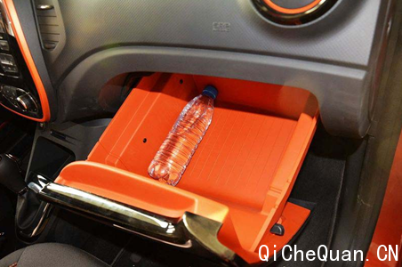 既然车小,就要充分利用空间。其手套箱的设计算是一个突破。第一次打开手套箱找车内说明书等资料时就意外地发现手套箱是抽屉式往外拉的,而不是向外打开成V字型开口的。这样的设计使得放置物品时不用往里塞,而是直接放,空间大不说放取还方便。