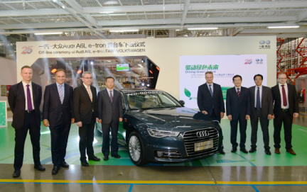 一汽-大众中德双方嘉宾与首台奥迪A6L e-tron合影留念