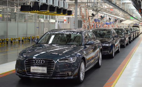 一汽-大众首台奥迪A6L e-tron从长春基地总装车间生产线驶下