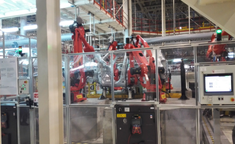 焊装车间有6台在线测量机器人,对车身上151个关键部位进行在线精度测量,而且是100%的检验以确保白车身的精度和质量。
