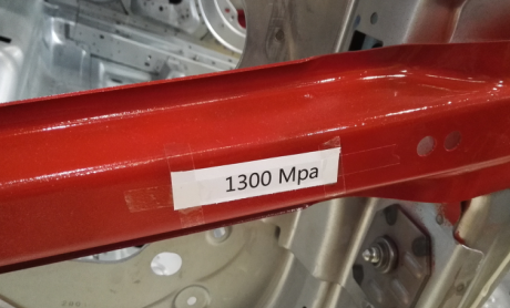 按照450兆帕以上强度计算,Jeep 指南者车身高强度钢占比64%,堪称同级最强。而竞品多以350兆帕为以上强度计算高强度钢,即便如此,高强度钢占比依然只达到50%左右。指南者使用的热成型钢板(强度最低在1300MPa,最高可达1600Mpa)占比接近30%。