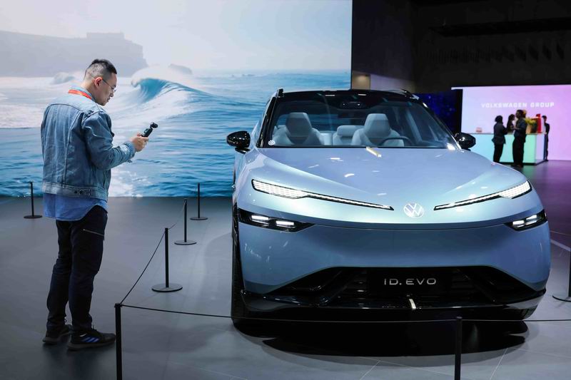 观众在进博会现场参观大众汽车品牌ID. EVO