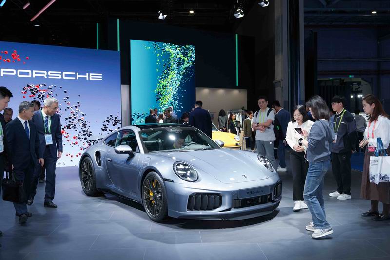 而在展台右侧,保时捷品牌以一场跨越时空的对话,生动演绎经典传承与锐意创新的深度融合。史上最强量产911——新款 911 Turbo S 在进博会迎来亚洲首秀,凭借创新T-Hybrid双电动涡轮增压系统、保时捷动态底盘控制系统(ehPDCC)以及523KW、800 Nm的强劲性能表现,彰显其旗舰性能跑车的标杆地位。而至今已诞生 60 周年的 911 S Targa也在一旁并肩而立,一同诠释着保时捷标杆车型911历久弥新的传奇魅力。