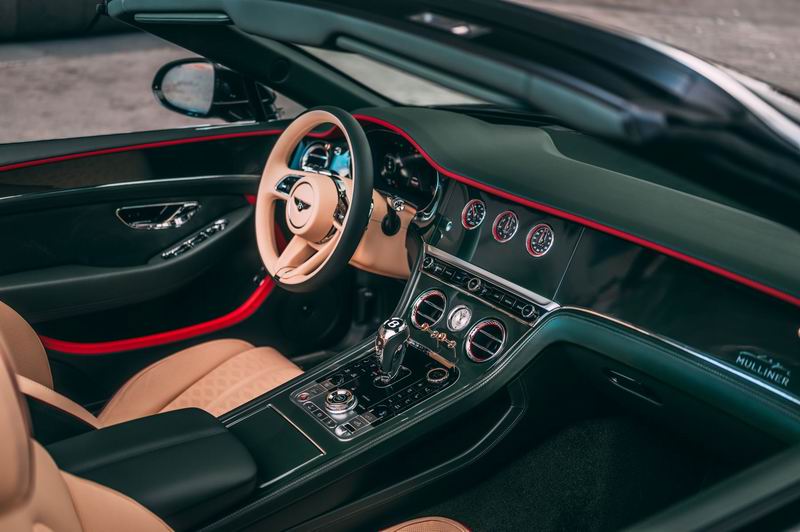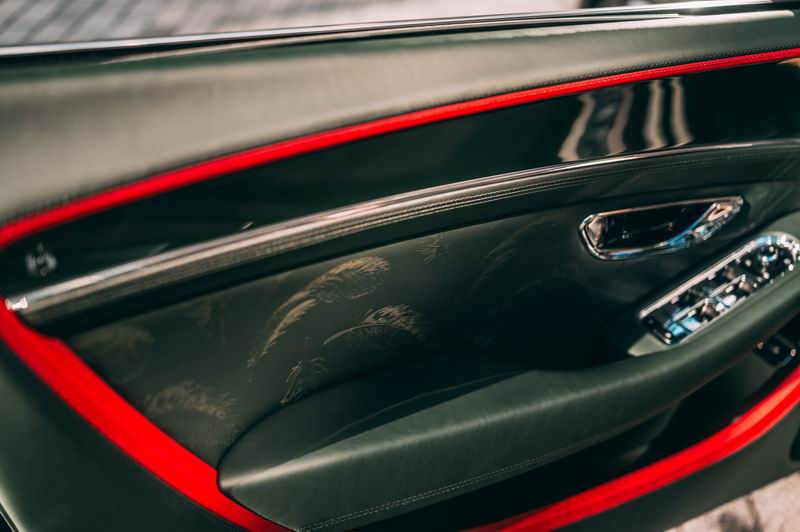 伦勃朗于1642年创作的旷世名作《夜巡》(The Night Watch),为MULLINER部门打造的该系列首台定制车型赋予灵感。这台欧陆GT敞篷版车型选用黑绿宝石(Midnight Emerald)外观漆色,车内的热刺红(Hotspur)强调色皮革巧妙呼应了画中主角Frans Banninck Cocq上尉所佩戴的红色绶带,而木兰花白(Magnolia)主皮革则受到画中副官外套颜色的启发,与墨绿(Cumbrian green)辅皮革形成绝妙对比。钢琴漆(Piano)饰面与腰梁均采用墨绿色,金色风琴音栓式出风口控制键增添奢华质感。