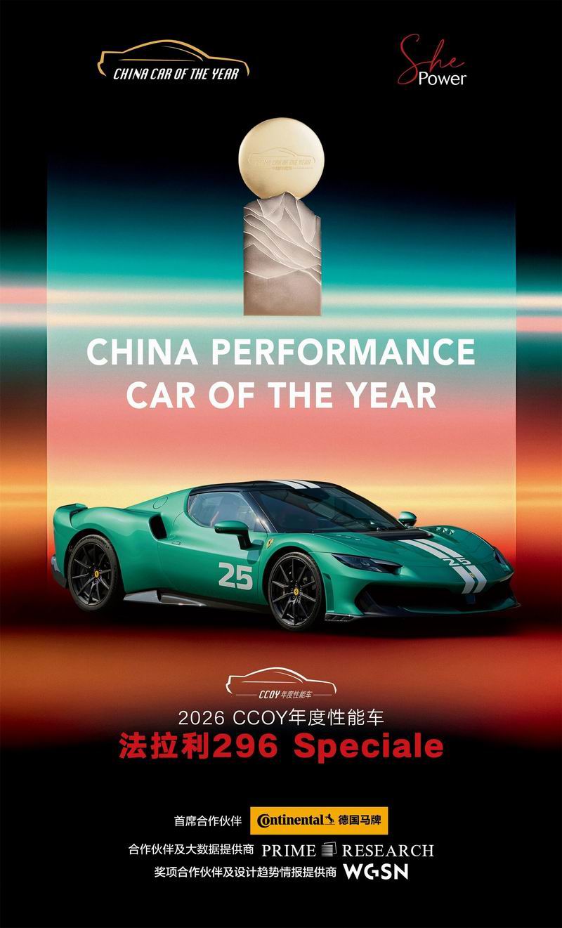 北京,2026年1月8日——今日,意大利超豪华品牌法拉利旗下的法拉利296 Speciale荣膺“2026中国年度性能车”大奖。该奖项由48位权威主编级汽车媒体人共同投票评出,法拉利大中华区总裁杨跃思博士(Dr. Jan Voss)代表跃马品牌在北京举行的颁奖盛典上领取了这一重磅奖项。