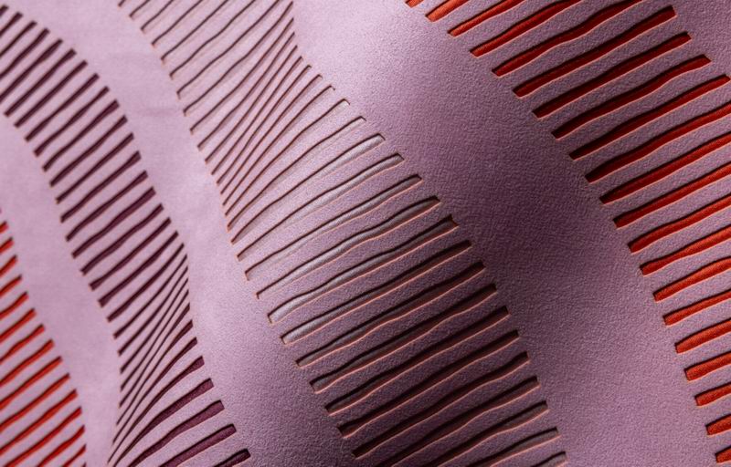 本季系列的一大亮点,是Alcantara色彩体系中的新成员——“Sakura(樱花粉)”的首次亮相。这一细腻而富有层次的粉色调取名自日语“樱花”,并从其色彩意象中汲取灵感,象征着光、新生与优雅。Sakura正式加入Alcantara的核心色系,并与 2027 春夏系列中的橙色等活力色调以及勃艮第红等深邃色调相互呼应。多元色彩之间的碰撞与融合,营造出充满力量感与生命力的视觉张力,在保持整体平衡与和谐的同时,唤起人们被日出与日落等自然现象所激发的深层情感共鸣。