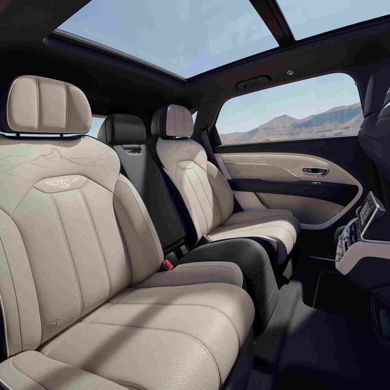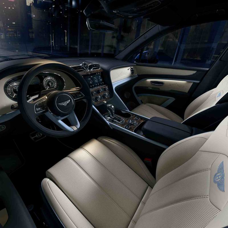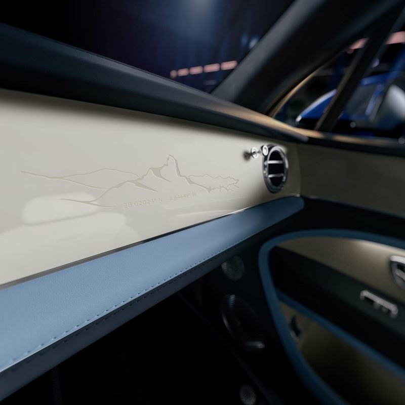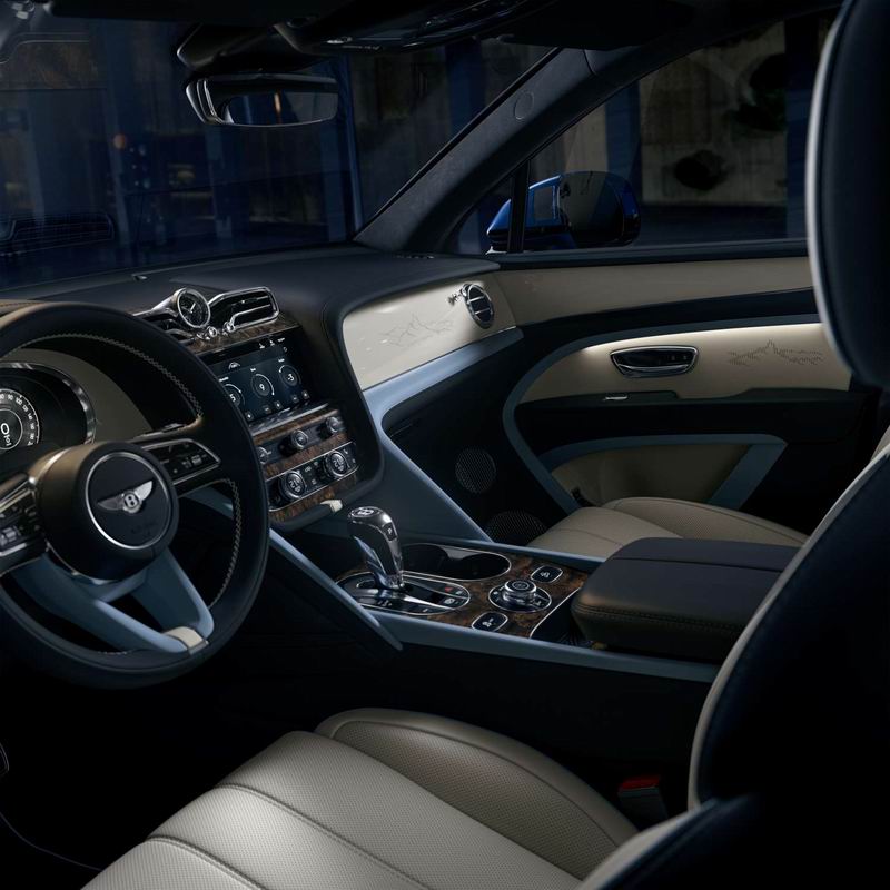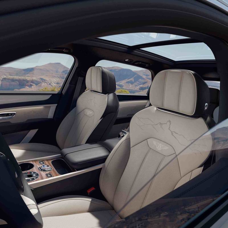 车型专属配置包括独特的“Roque Bentayga”山峰图案,以蚀刻工艺呈现于仪表板,并通过激光穿孔工艺镌刻于座椅与车门之上。其标配多项MULLINER核心配置,包括22英寸灰色喷漆抛光轮毂与MULLINER双菱形前格栅。外观方面,车身下部饰件提供八款与车身同色的配色方案,赋予添越车型极具现代感的简约侧影美学。