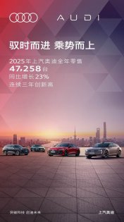 连续三年稳健增长 上汽奥迪2025年零售同比增长23%