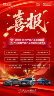 以标杆实力引领行业新高度 一汽-大众荣获2025中国汽车质量盛典八项大奖
