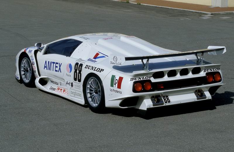 兰博基尼Diablo GT-R,1999-2000数据表 发动机:60°夹角V12铝制发动机 缸径与冲程:87 x 84毫米 排气量:5,992立方厘米 压缩比:10.7:1 功率:434千瓦/在7,300转/分时,达590马力 扭矩:在5,500转/分时达630牛·米 进排气控制:双顶置凸轮轴,链条传动,每缸四气门 燃油混合气:兰博基尼LIE进气歧管燃油喷射系统 润滑方式:湿式油底壳润滑 变速箱:兰博基尼5速手动变速箱+倒挡 离合器:干式单片离合器 车身:采用钢管结构,搭配铝合金、碳纤维及玻璃纤维部件 底盘:前后双横臂悬架,搭配螺旋弹簧与伸缩减震器 伸缩式减震器 制动系统:后通风盘式制动器355毫米 长度/宽度/高度:4,430/2,040/1,115毫米 轴距:2,650毫米 前轮轮距:1,650毫米;后轮轮距:1,670毫米 轮胎:倍耐力P0,前轮245/35 ZR18,后轮335/30 ZR18 整备质量:1,400千克 0–100公里/小时加速:3.5秒 最高时速:338公里/小时/211英里/小时 产量:32台 |