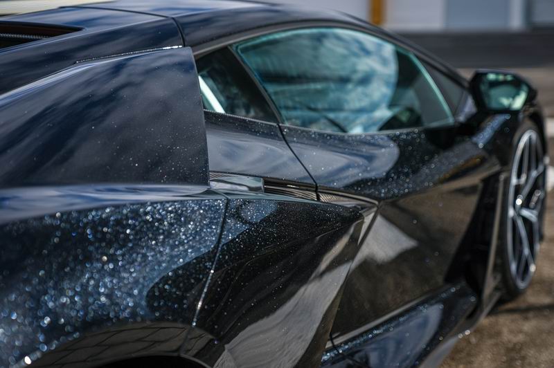有些名称与色彩本身一同诞生,由兰博基尼Ad Personam高级个性化定制部门倾力打造,旨在彰显漆面独一无二的质感。钻彩涂层(Diamond Coating)便是如此——它并非传统色漆,而是一种特殊的喷涂饰面。正如其名,这种独家透明涂层在最后一道工序中融入了真实的钻石粉尘,在光线照射下呈现出细腻而非凡的闪耀效果,令车身色彩的深邃与亮度进一步升华。钻石粉所产生的光影反射,是任何金属、云母或玻璃颜料都无法复制的——其折射出的无数晶莹光点,使车身表面呈现出极高的光泽度与璀璨感。同样,水晶效应(Crystal Effect)则通过复杂的多层手工涂装工艺实现,数种色彩涂层交叠融合,形成动态变幻的视觉效果,以不断刷新的光影重塑车身的每一处曲线。