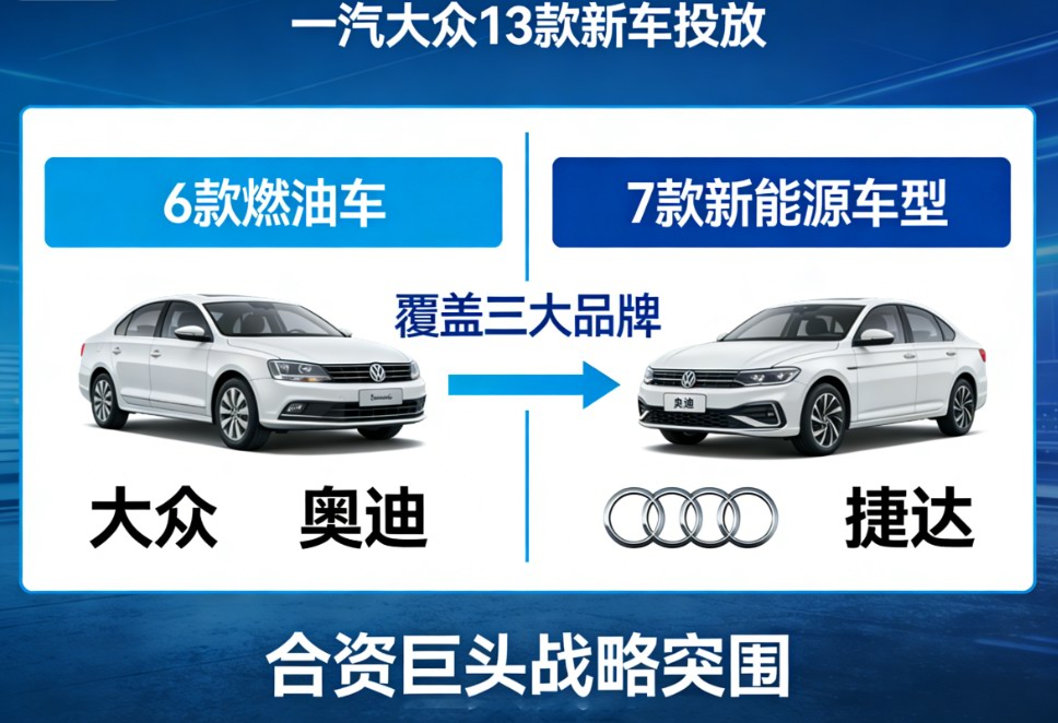 今年,一汽大众将推出13款全新车型,涵盖6款燃油车与7款新能源车型,覆盖大众、奥迪、捷达三大品牌。不同于行业“以量冲市”的解读,这场密集投放的背后,是这家累计产销突破3000万辆的合资巨头,在行业变局中的战略突围,更是合资品牌转型的全新范式。