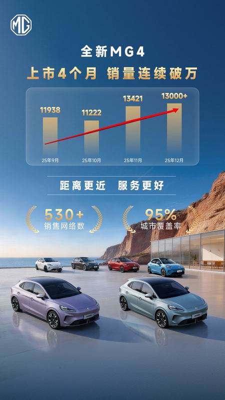 12月全新MG4热销超1.3万辆,上市4个月销量连续破万