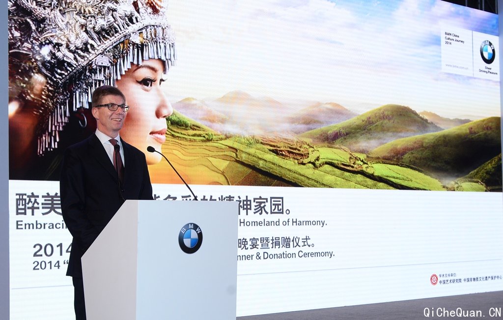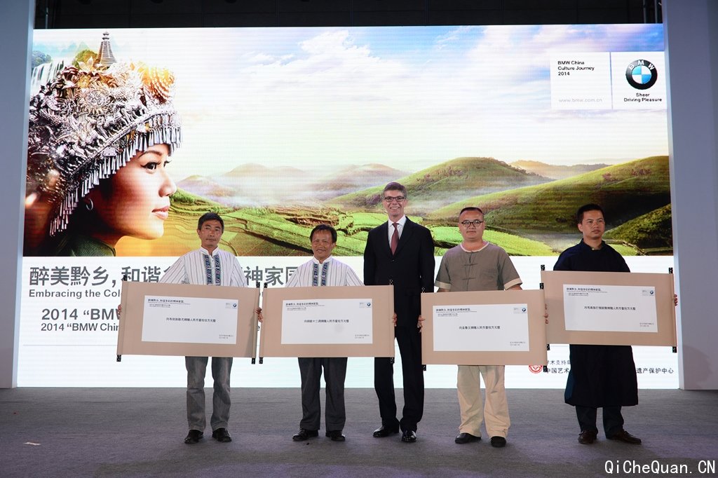 探秘黔乡,守护和谐多彩的精神家园。在历经八天的深入探访后,2014“BMW中国文化之旅”车队于7月4日顺利抵达贵阳,为这段总计2000多公里的文化征程画上了一个完美的句号。在当晚举办的捐赠仪式上,BMW向“布依族勒尤”、《亚鲁王》、“毛南族打猴鼓舞”、“铜鼓十二调”等4项亟待保护的非物质文化遗产项目进行了45万元捐赠。至此,“BMW中国文化之旅”已在八年间对77项中国非物质文化遗产项目给予了总计800万元的资金支持。中国非物质文化遗产保护中心常务副主任罗微女士、华晨宝马汽车有限公司总裁兼首席执行官康思远先生、贵州省文化厅副厅长姜刚杰、文化遗产保护方面的专家、学者以及车队成员齐聚一堂,庆祝本次探访活动圆满结束。