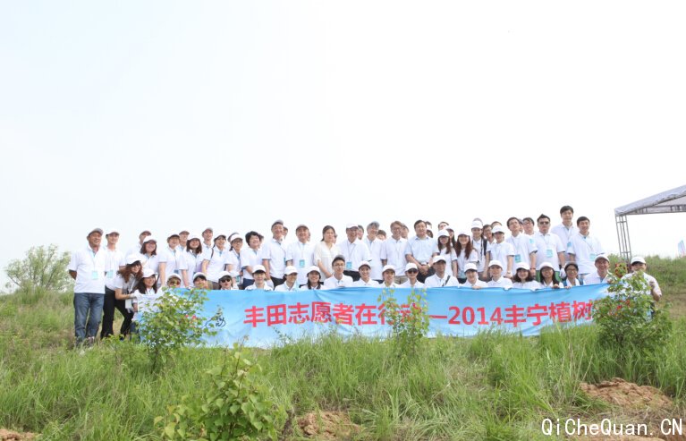 (2014年7月05日,河北省丰宁)一年一度的丰田汽车(中国)投资有限公司(以下简称丰田中国)志愿者植树造林活动在河北省丰宁满族自治县举办。自2001年启动防治沙漠化植树造林活动——“21世纪中国首都圈环境保护示范基地”项目以来,丰田的植树活动已经开展了14个年头。截至2014年,丰田在丰宁的植树造林项目已累计直接投入资金约3750万元,植树约500万棵,绿化总面积超过5万亩以上(约等于4200个足球场),树木的成活率高达90%以上,取得了显著的绿化效果。
