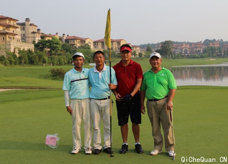 2014宝马杯云东海高尔夫花园球队争霸赛第二位“一杆进洞”奖得主林浩涛先生(左2)与嘉宾合影
