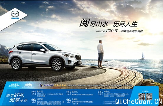 万“马”奔腾,齐享好礼。自去年8月上市以来,长安马自达Mazda CX-5(下文简称CX-5)便以超乎想象的驾控体验与高效节能表现在紧凑型SUV市场一路高歌,前不久更是以总分57的高分成绩荣获C-NCAP(中国新车评价规程)碰撞五星安全评价。为答谢广大车友长久以来对CX-5的坚定支持,长安马自达将在CX-5上市周年之际推出6重大礼,全面涵盖购车、二手车置换、金融购车方案、到店试驾礼等几大惠客礼遇。