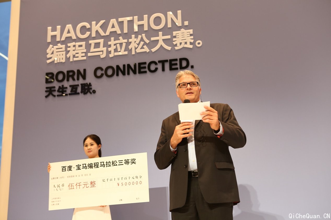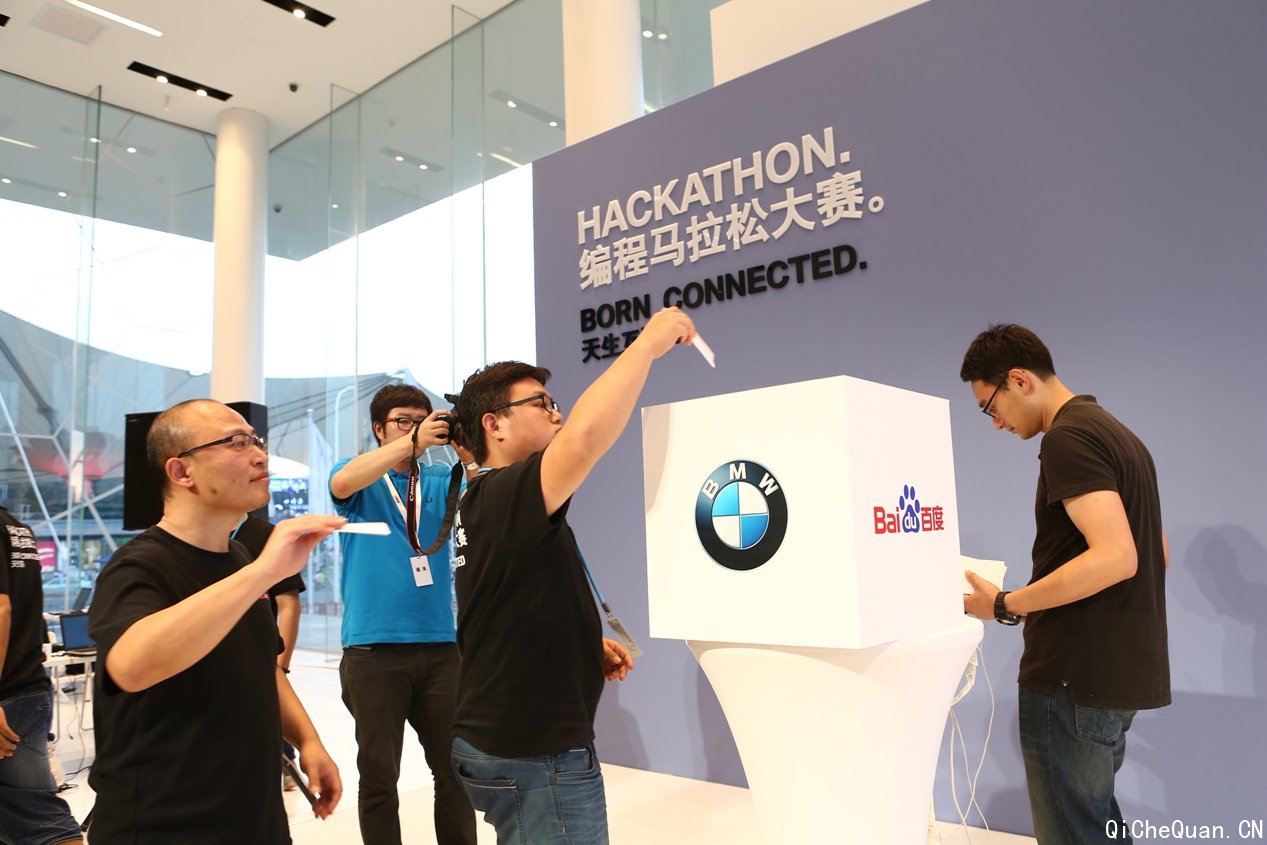 (上海)2014年7月18日-19日,宝马(中国)与百度合作,在上海BMW品牌体验中心举办以“天生互联”为主题的“车载轻应用编程马拉松”大赛。通过公开报名参赛的69名程序员,经过30小时头脑激荡,开发出19个车载应用程序,并在BMW i3纯电动汽车上进行配置与测试。最终5个应用程序凭借新颖的创意和友好的用户交互体验,赢得评委团一致认可,以及共计6万的大赛奖金。宝马集团董事,负责研发的迪斯博士,百度副总裁李明远先生亲临现场,分别就汽车、互联网的未来,发表精彩演说。