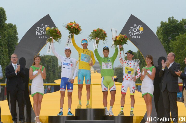 在香榭丽舍大街,斯柯达汽车全球负责采购的董事Karlheinz Hell先生祝贺文森佐·尼巴里(Vincenzo Nibali)赢得了赛程总冠军并为来自法国的白衫优胜者(25岁以下成绩最好的车手)Thibaut Pinot颁发奖杯。来自波兰的Rafaj Majka赢得了圆点衫最佳爬坡者的称号。最佳冲刺者同时也也是绿衫的获胜者是来自斯洛伐克的Peter Sagan。四位运动员欣喜地接过捷克水晶奖杯,该水晶奖杯是由斯柯达设计师Peter Olah在斯柯达汽车设计室完成的。