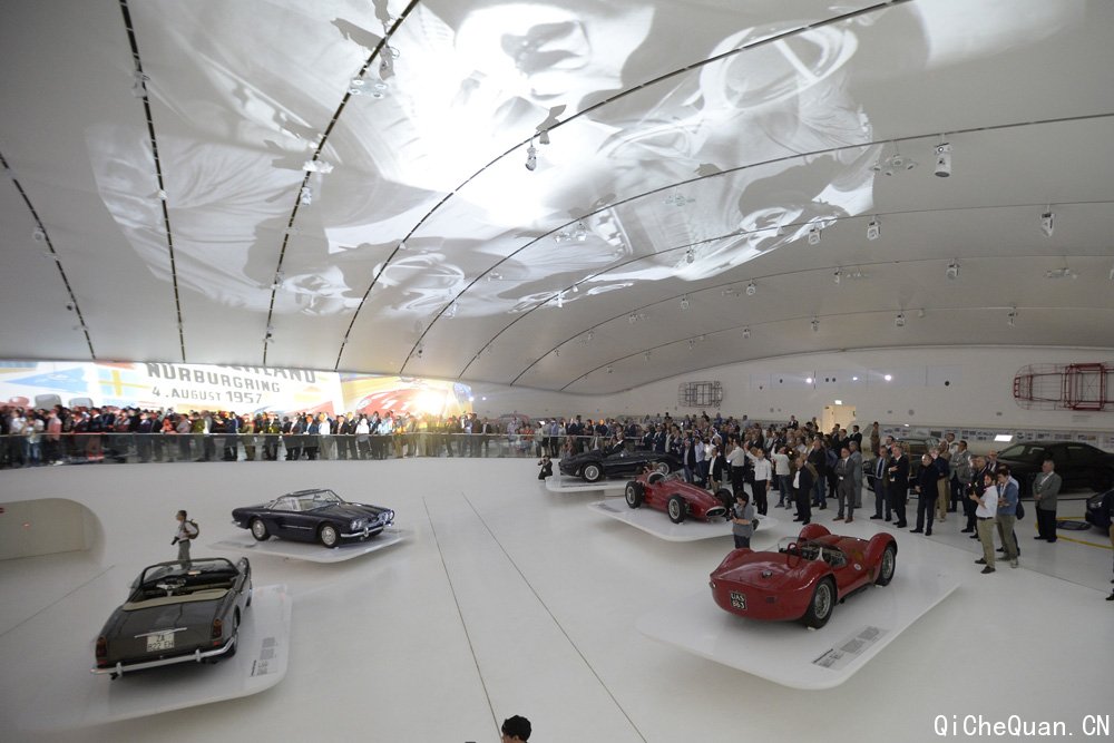 玛莎拉蒂百年展的展览场地是专为恩佐 法拉利设立的博物馆,这里是这位摩德纳汽车制造商的诞生地。参观者在这里更有机会参观珍贵的法拉利车型以及战前最著名的阿尔法·罗密欧赛车,这些赛车都是法拉利驾驶过的赛车或曾经参加过国际比赛。这一部分的展览在恩佐父亲的工作车间举办,他从十九世纪末起一直在这个大车间工作直到去世,如今这个车间已经扩展成为博物馆的展览场地。