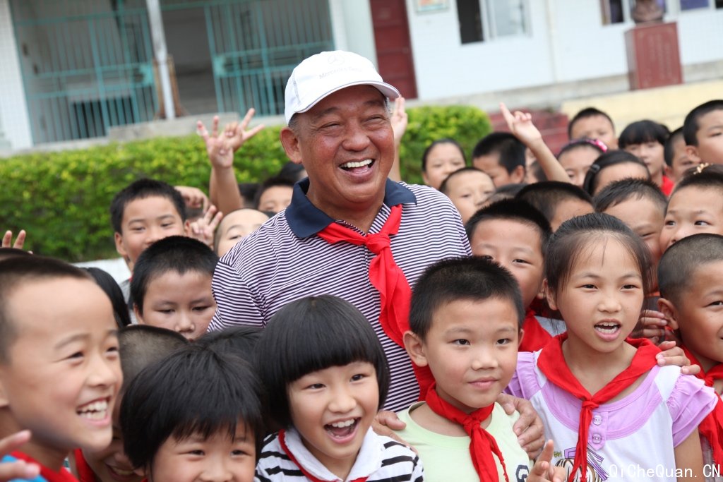利星行汽车董事长庄国邦与南西小学的孩子们合影