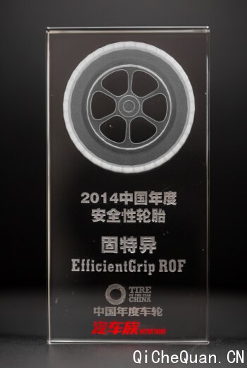 2014年9月2日,中国上海——近日,屡获嘉奖的固特异御乘再传喜讯,在《汽车族》杂志主办的“2014中国年度车轮”评选中,固特异御乘缺气保用轮胎(Eagle EfficientGrip ROF)荣膺“2014中国年度安全性轮胎”称号。
