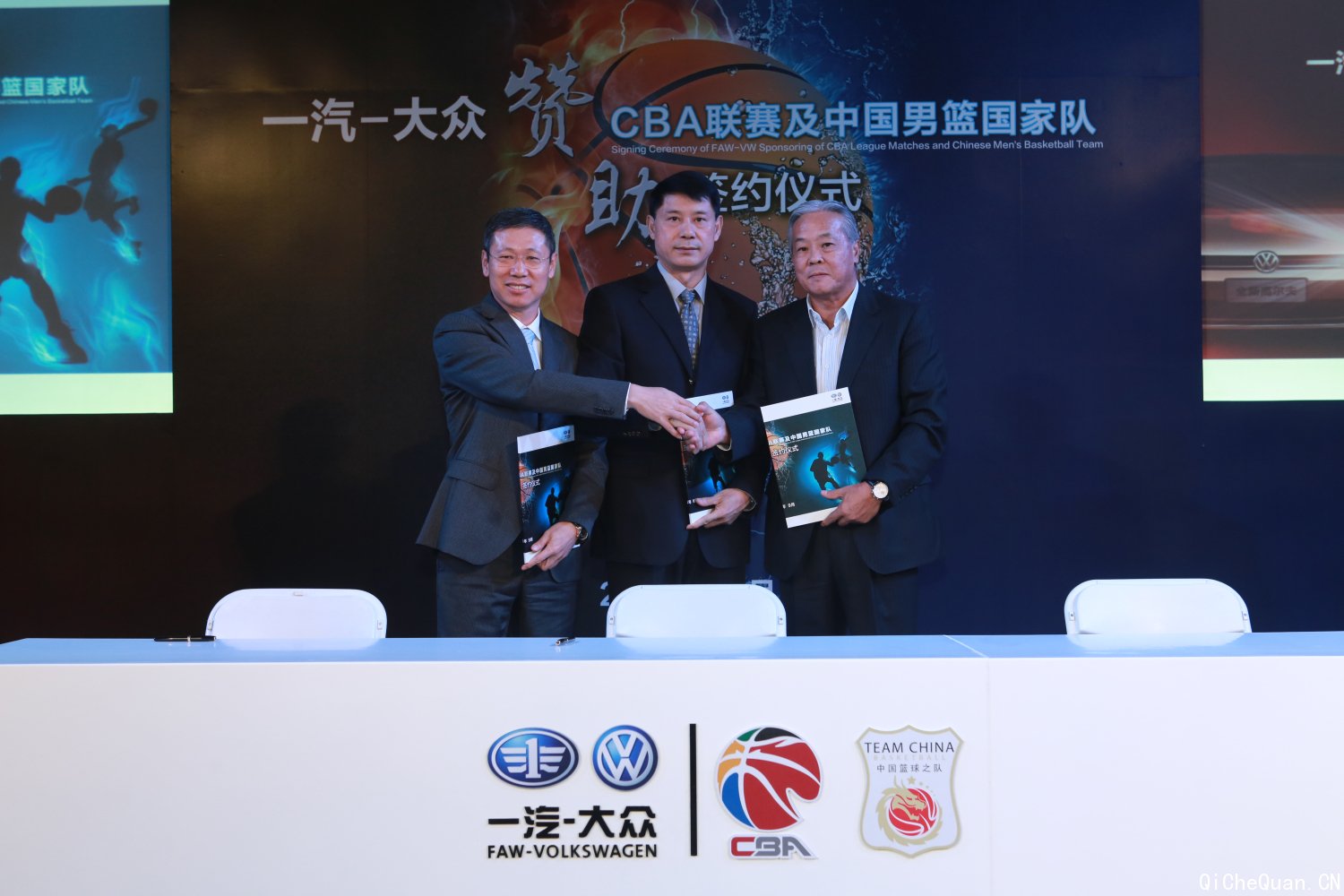 完成签约后,一汽-大众正式成为CBA联赛及中国男篮国家队的合作伙伴