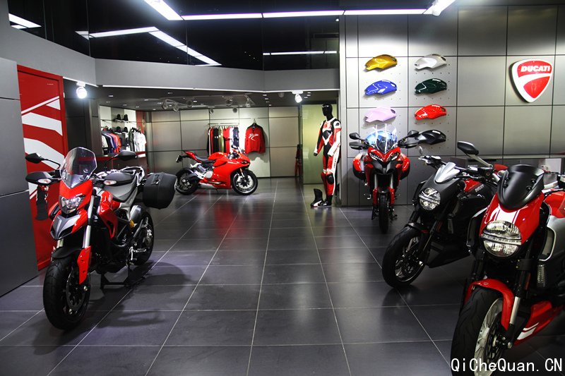 开阔的车辆展示区提供全系杜卡迪以供挑选
