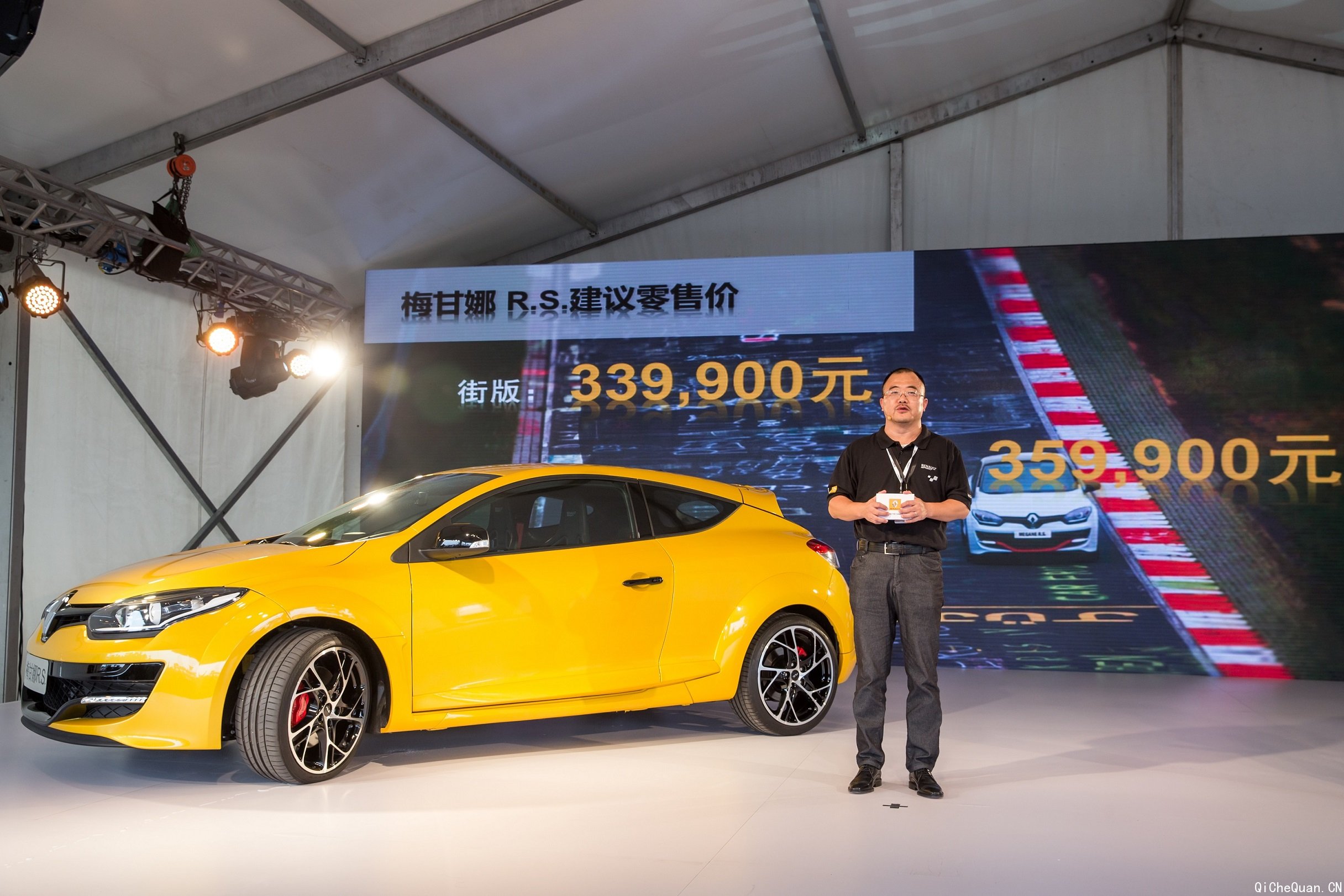 2014年9月27日,今日,为汽车运动理想而生、血液中流淌着运动基因的雷诺,再度用运动为自己的中国梦想加码。在上海国际赛车场,东风雷诺宣布:曾两度征服纽博格林赛道的梅甘娜R.S.限量登陆中国,售价33.99万-35.99万元。2014年,50位赛车运动爱好者将有幸与“前驱王者”梅甘娜R.S.在中国再度上演“赛道传奇”。秉承对公益事业的热忱以及推动中国汽车运动文化发展的使命感,东风雷诺连续第五年赞助壹基金慈善明星赛,并首次由风朗担任慈善赛指定用车。此外,东风雷诺还经由合作伙伴FRD(方程式赛车发展有限公司)将雷诺自有赛事Formula 2.0和Clio杯全新赛车带到中国,以期用性能更加强劲的战车点燃中国年轻车手的“驭”望。