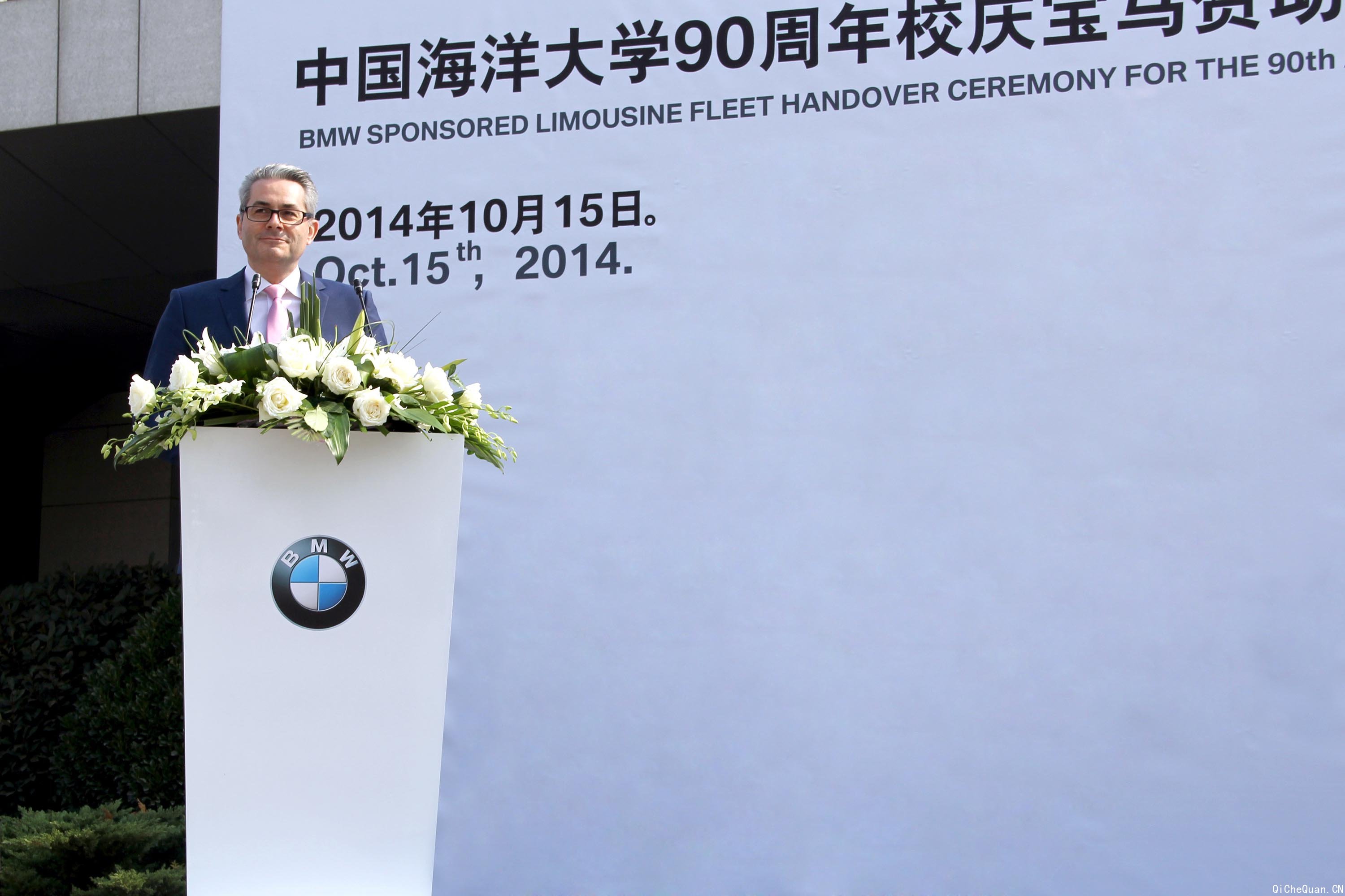 10月15日,为庆祝中国海洋大学90华诞,华晨宝马和宝马中国向校方提供一支由20台BMW 7系和BMW 5系Li组成的车队,作为10月15日-10月31日校庆系列活动期间的赞助用车。华晨宝马汽车有限公司大客户与二手车销售部副总裁马涵德先生和中国海洋大学党委副书记、副校长陈锐教授共同出席了交车仪式。