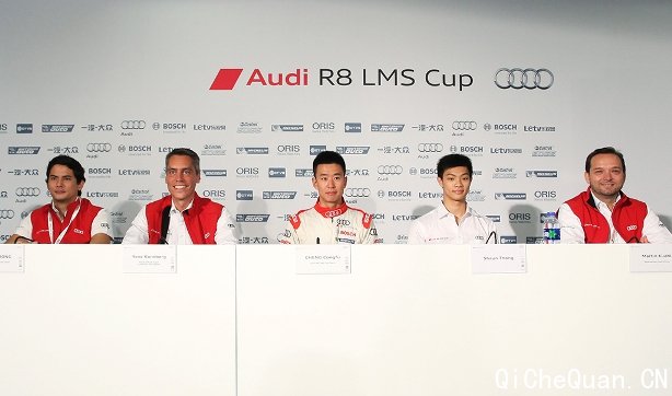 奥迪运动(亚洲)customer racing部门总监(左二)发布2015赛季奥迪R8 LMS杯赛程及全新亚洲青年车手发展计划