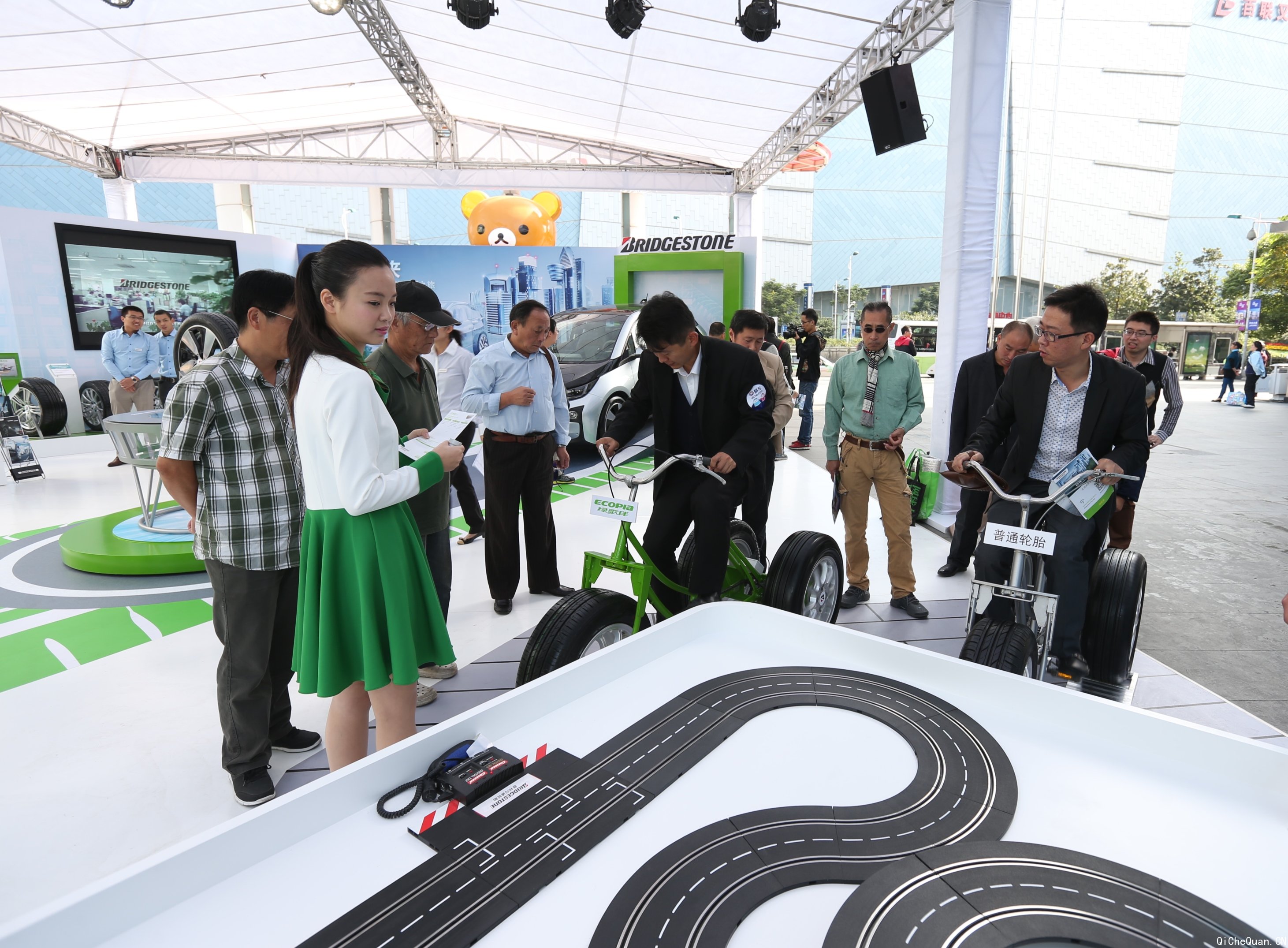 除了核心展示区内的尖端创新技术惊艳亮相以外,现场其他区域内丰富的展示内容与高科技呈现形式也吸引了众多人流驻足。在AR互动区,高科技AR技术以立体呈现的方式带领观众共同探求ECOPIA绿歌伴主打商品的性能优势。在卡雷拉“动”起来区域,两辆分别装配普通轮胎与ECOPIA绿歌伴轮胎的三轮车与“卡雷拉赛车”共同构建起轮胎滚动阻力体验单元,体验者通过蹬骑三轮车驱使两辆卡雷拉赛车在“赛道”飞驰,在对比体验中感受绿歌伴轮胎的低滚动阻力带来的轻松环保感受。不仅如此,除了ECOPIA绿歌伴家族全明星商品阵容之外,包括TURANZA泰然者舒适系列、POTENZA搏天族运动系列、DUELER动力侠越野系列等在内的普利司通旗下各大乘用车商品品牌、以及搭载可缺气行驶技术的RFT轮胎商品也来到现场助阵,配合丰富多彩的舞台表演,为展台积攒了火爆人气。