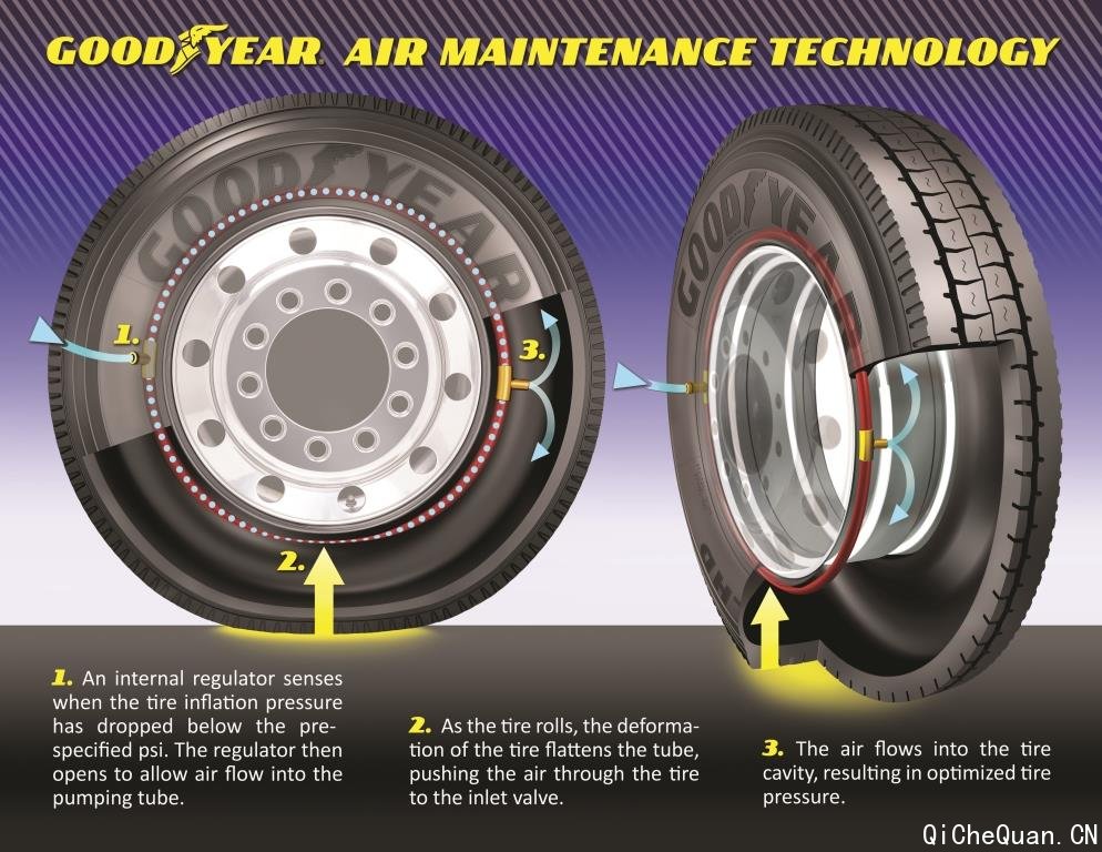自2011年以来,固特异的研发团队一直着力于开发并测试胎压自控技术;此项技术不仅有助于节省燃油和降低二氧化碳排放,还可以延长胎面使用寿命,提高轮毂的耐久性和安全性,更无需手动为轮胎充气。在下一阶段的测试中,美国和加拿大的多支货运车队将在之后的18个月内通过常规运行来测试胎压自控技术。