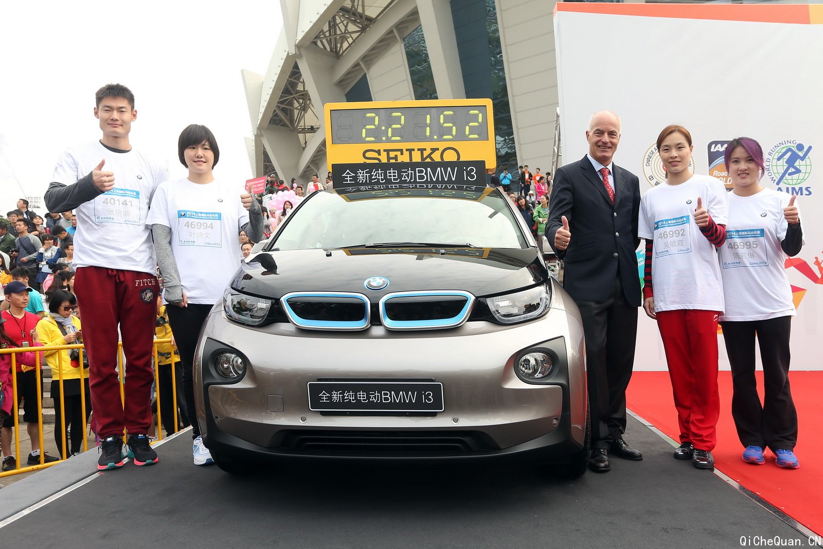 在比赛中,来自全国各地的BMW车主、员工和品牌爱好者组成了“BMW方阵”,由奥运冠军吴敏霞、叶诗文、陈若琳及亚洲冠军张培萌荣耀领衔,在上海国际马拉松的赛场上展现了BMW品牌及BMW i3所代表的积极健康的生活态度和坚持梦想的精神。