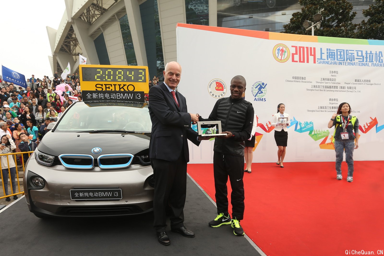安格先生为男子冠军颁发BMW i3引导车纪念奖品