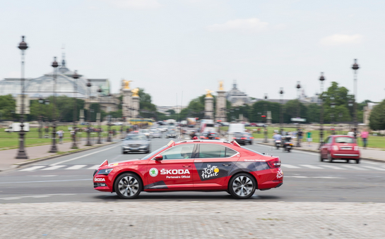 多年来斯柯达车队一直都是斯柯达环法自行车赛赞助活动的重要内容。今年的焦点当属旗舰车型斯柯达SUPERB速派,该车将换装醒目的“斗牛红”,作为“红车”领航骑手队伍。领航车还将配置了一个特别的全景玻璃天窗,按下第二排座椅上的按钮即可打开,这个特别的功能是为了方便赛事总监克里斯汀·普吕多姆(Christian Prudhomme)先生在车上站起来,在启动每个赛段前从不同的角度观察车队。此外,为了圆满完成“移动控制中心”的任务,斯柯达SUPERB速派还配备了全套技术装备,其中包括赛事总监用于接收信息和发布赛事及安全相关指令的多个电台频道。