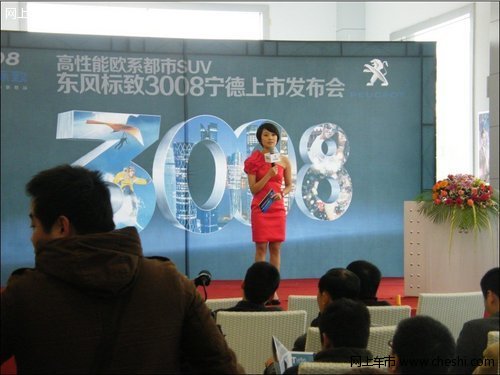 2013年1月27日,备受瞩目的东风标致首款欧系高性能都市SUV3008在宁德市举行了上市发布会。仪式吸引了众多喜爱标致汽车的朋友的到来,随后还举行了抽奖活动,更有精美礼品相送。结合3008“活,该快乐”的全新宣传主题,充分体现了3008作为东风标致首款战略SUV车型的非凡魅力。