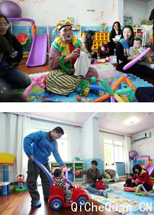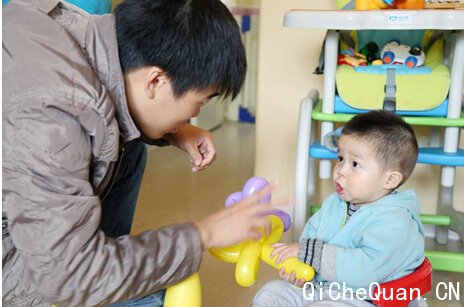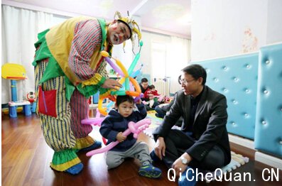 志愿者和小丑的到来,更是让孩子们喜出望外。小丑用气球为宝贝们编织造型各异的气球玩具——帅气的宝剑、华贵的皇冠等等,每一个都让宝贝爱不释手。小丑还为宝贝们带来一个又一个精彩的魔术,宝贝在志愿者的怀中灿烂的笑着。
